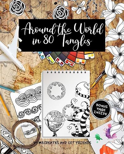 • Add watercolor background and patterns Temari, Eze, and Motia from "Around the World in 80 Tangles"
