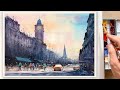 Capturing the Magic of a Sunset Cityscape: A Step-by-Step Watercolor Painting with Luminous Colors -